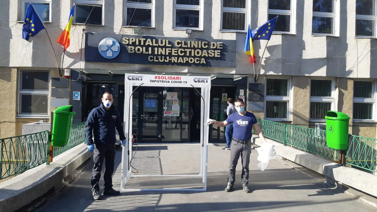 CERT Transilvania a montat porți de decontaminare la intrare în spitalele clujene