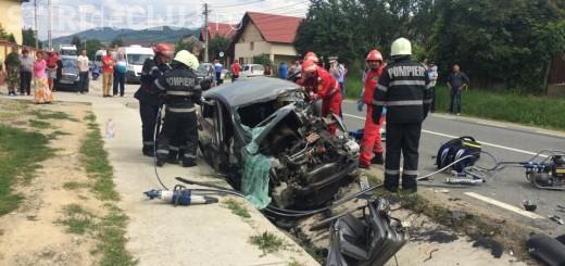 Autoturismul a fost proiectat câțva metri, din cauza impactului puternic, în șanțul de pe marginea drumului. Bărbatul a decedat pe loc, iar soția acestuia a rămas încarcerată, fiind necesară intervenția unui echipaj de descarcerare. După i intervenție de mai bine de jumătate de oră, femeia a fpst scoasă și trimisă, în stare gravă, la UPU Cluj-Napoca.