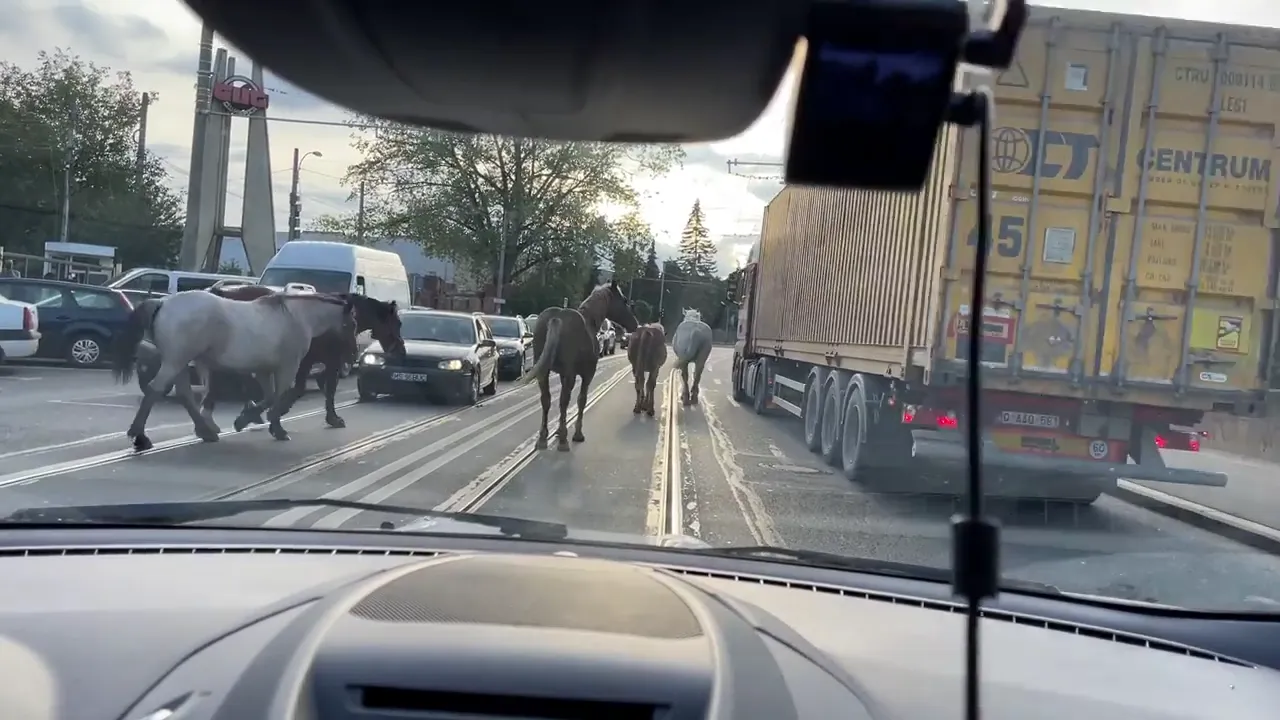 Șoferii au fost surprinși să vadă caii care intră liniștiți pe carosabil. Animalele aparțin unui proprietar din zonă, care nu le supraveghează, dar nici nu poate fi pus la punct.
