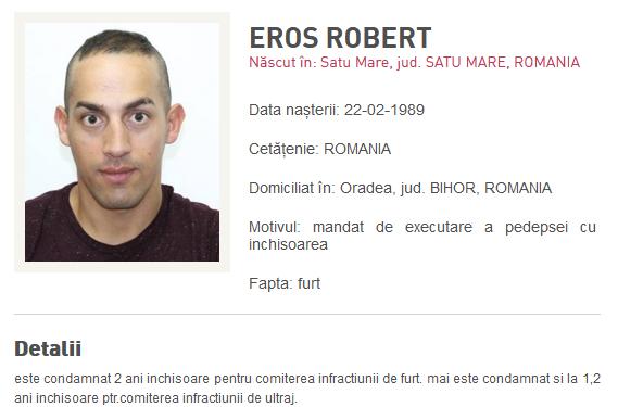 De-a lungul vremii, Robert Eros a trecut prin mai multe penitenciare din România. Prima condamnare a venit în 2015, când Judecătoria Timișoara l-a trimis după gratii pentru 6 ani, pentru furt. De atunci, a adunat mai multe dosare penale, toate pentru fapte comise în scurta perioadă în care ajungea în libertate.