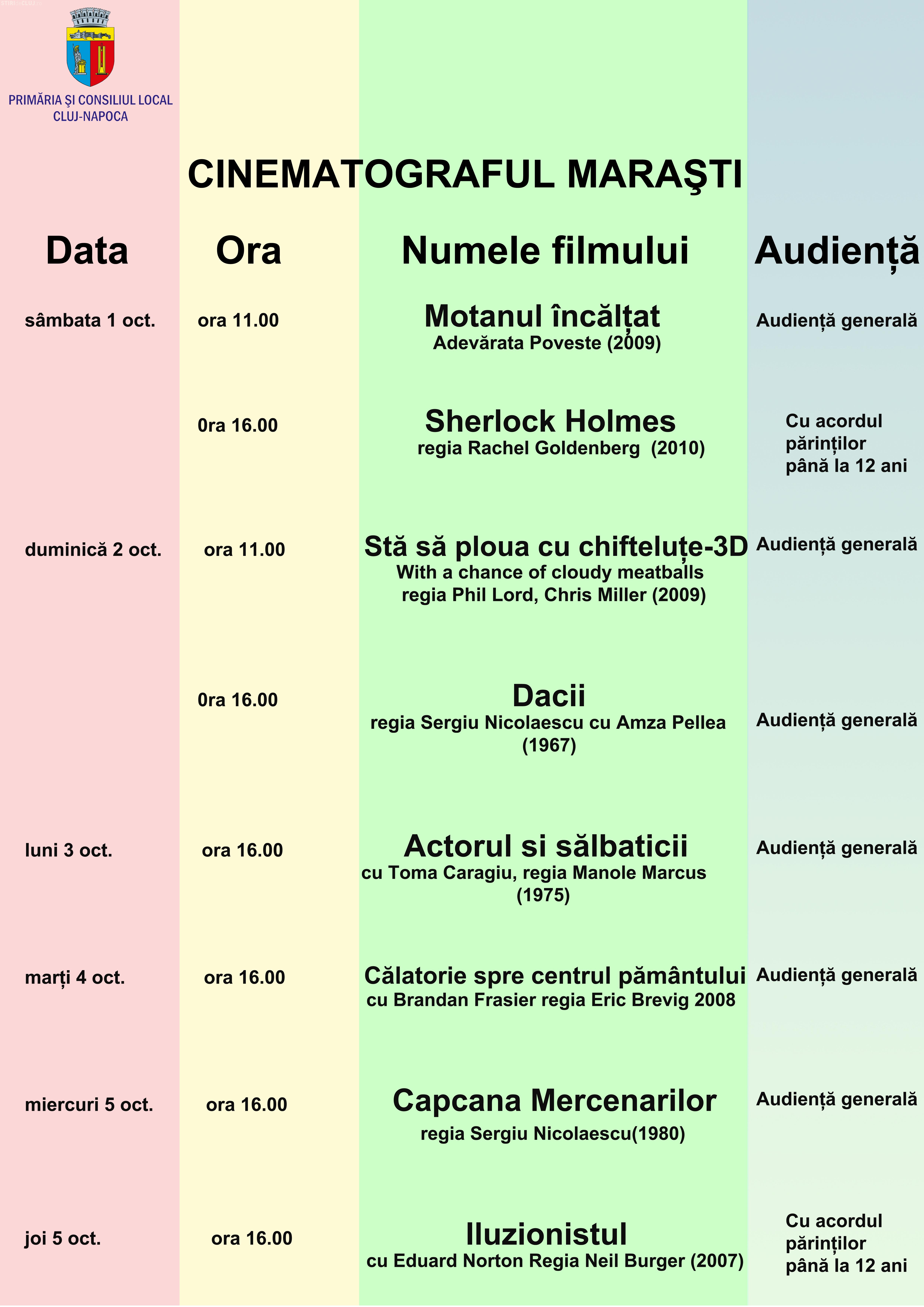 Cinema Marasti - programul acestei saptamani! Intrarea este gratis