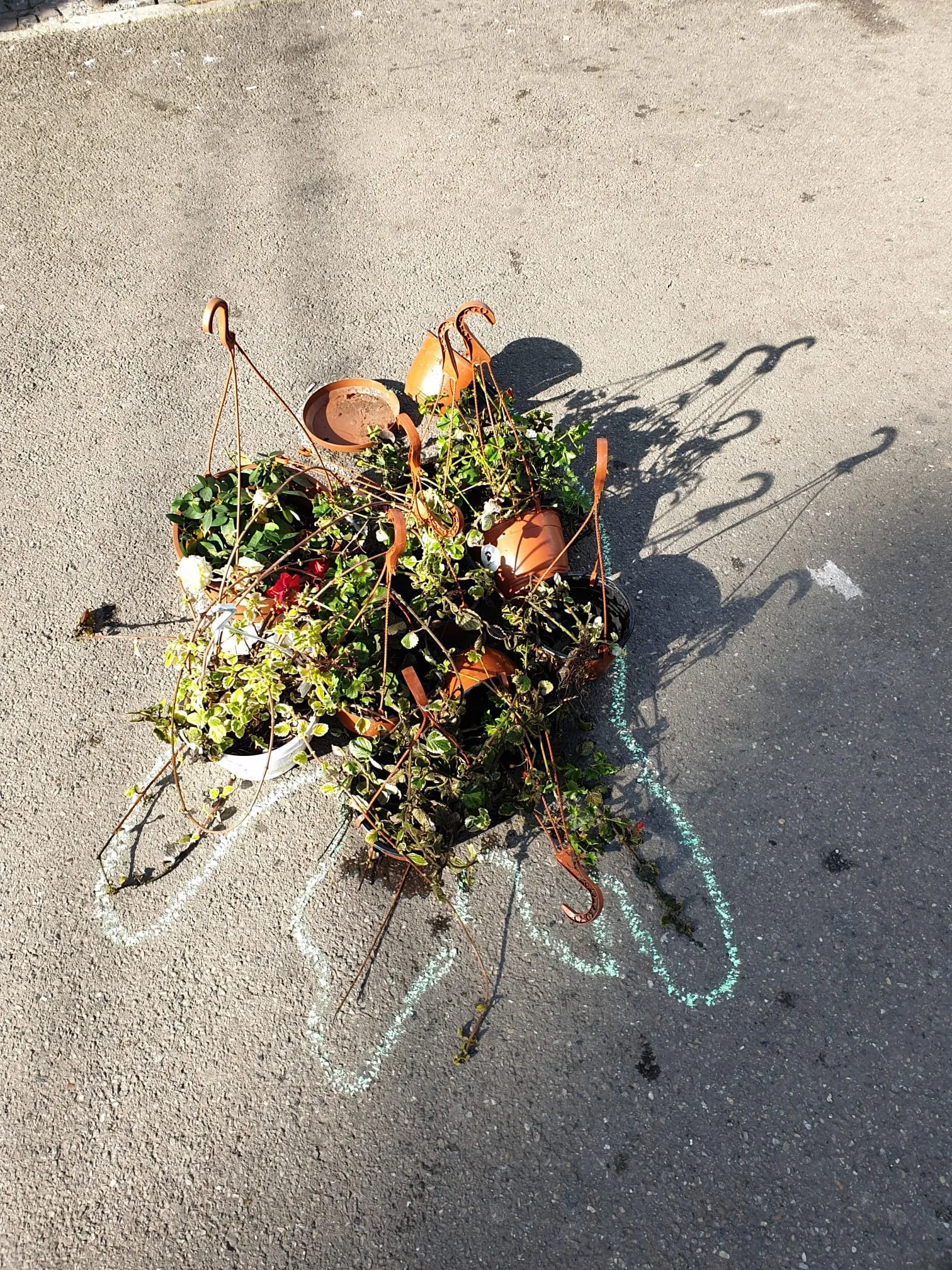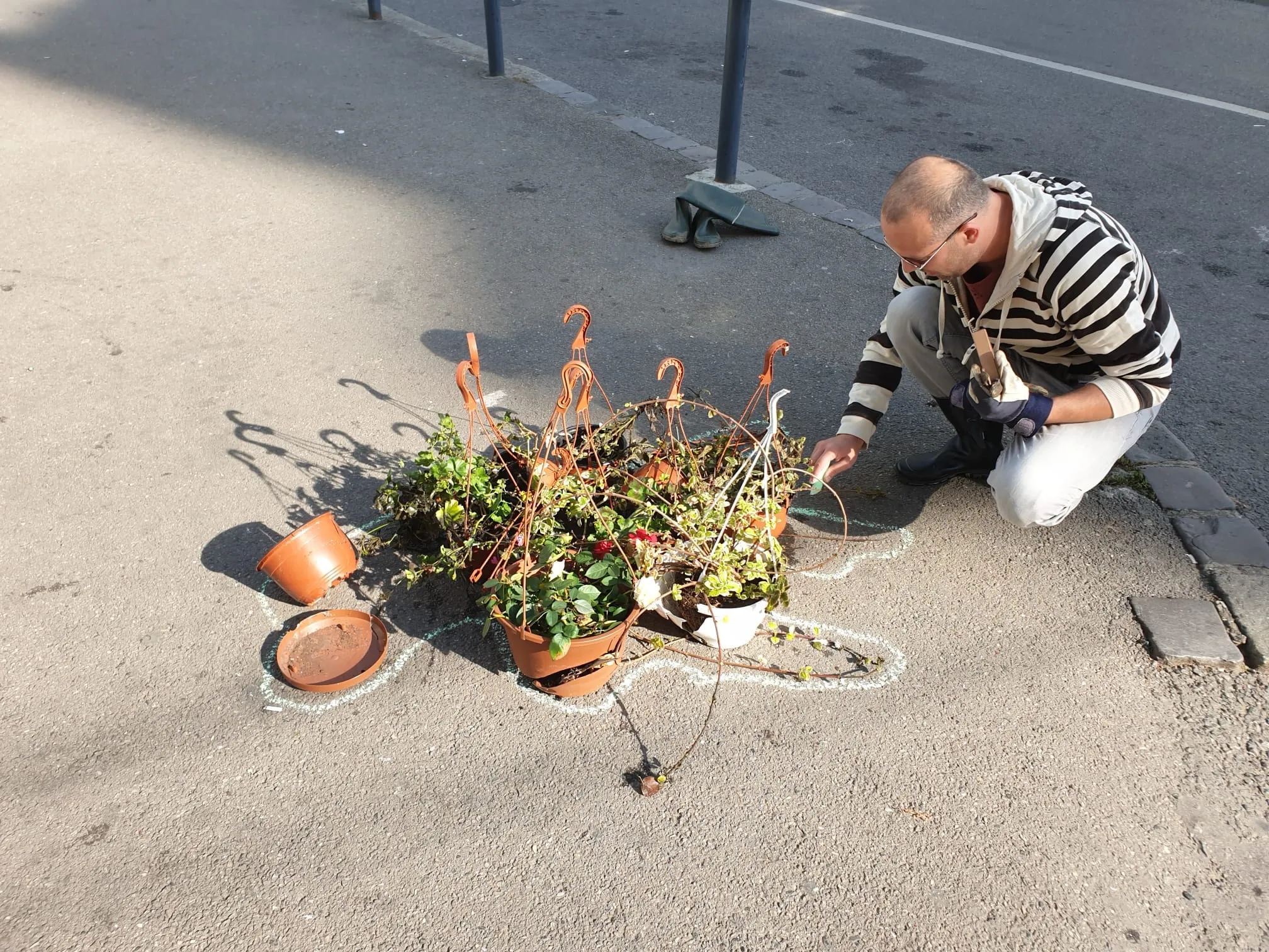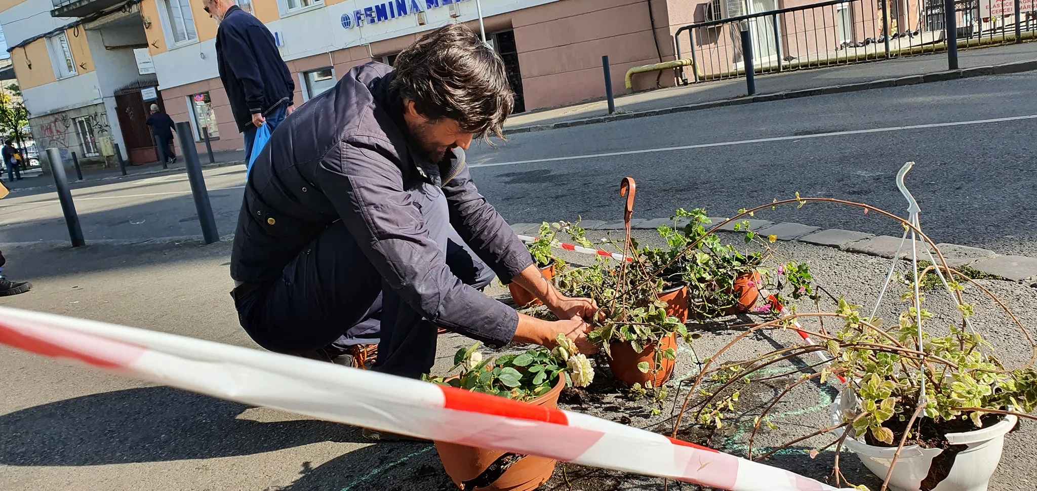 ”Am cercetat azi cu Marius Mornea primul crime scene din Centrul Verde. Aproximativ 6 ghivece cu muşcate de vârstă medie şi trăsături comune au căzut victimă unor fapte antisociale şi au ajuns în Canalul Morii.