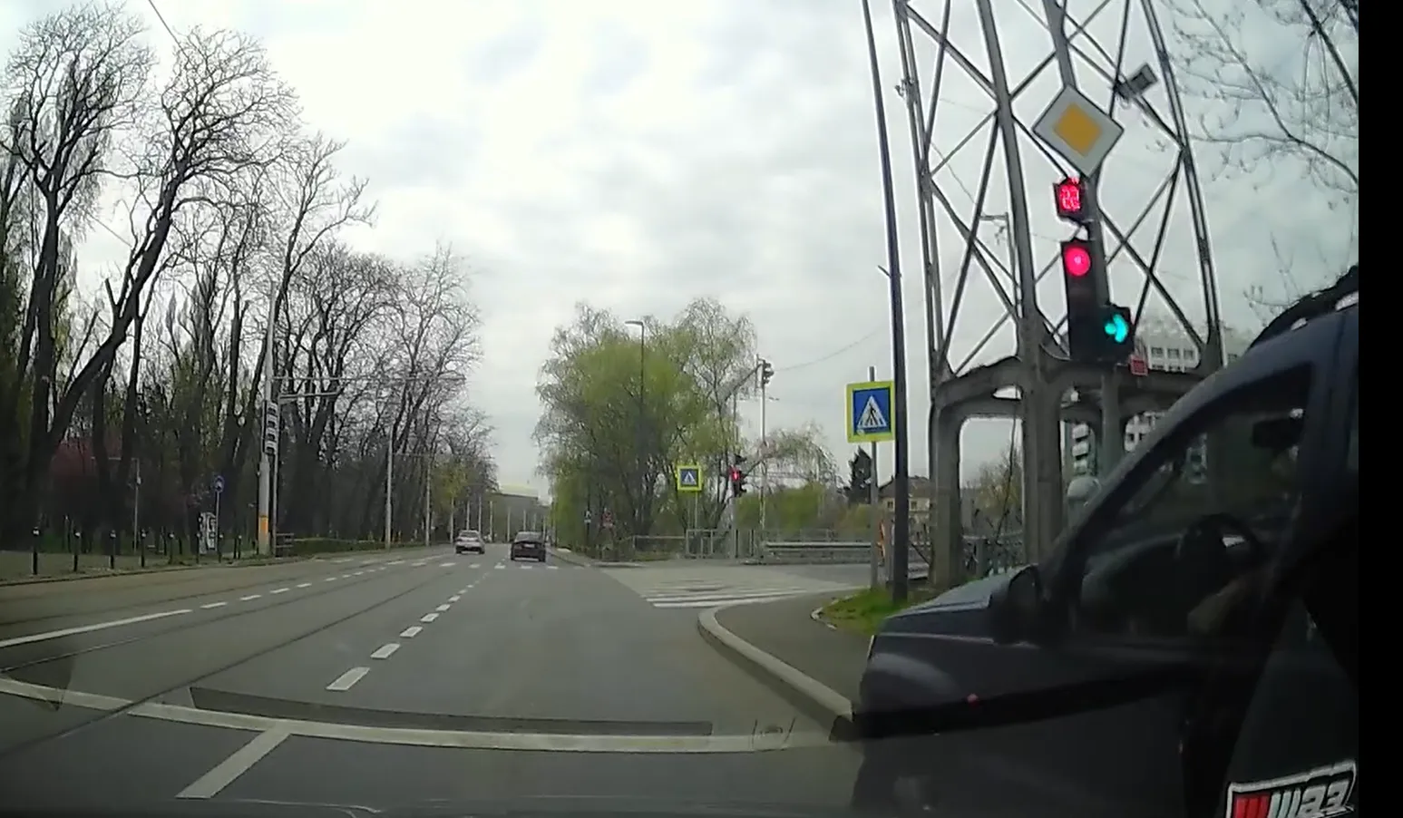 Astfel, ca să nu rateze culoarea verde a semaforului, bărbatul a urcat cu mașina pe trotuar și și-a depășit „rivalul” pe partea dreaptă.