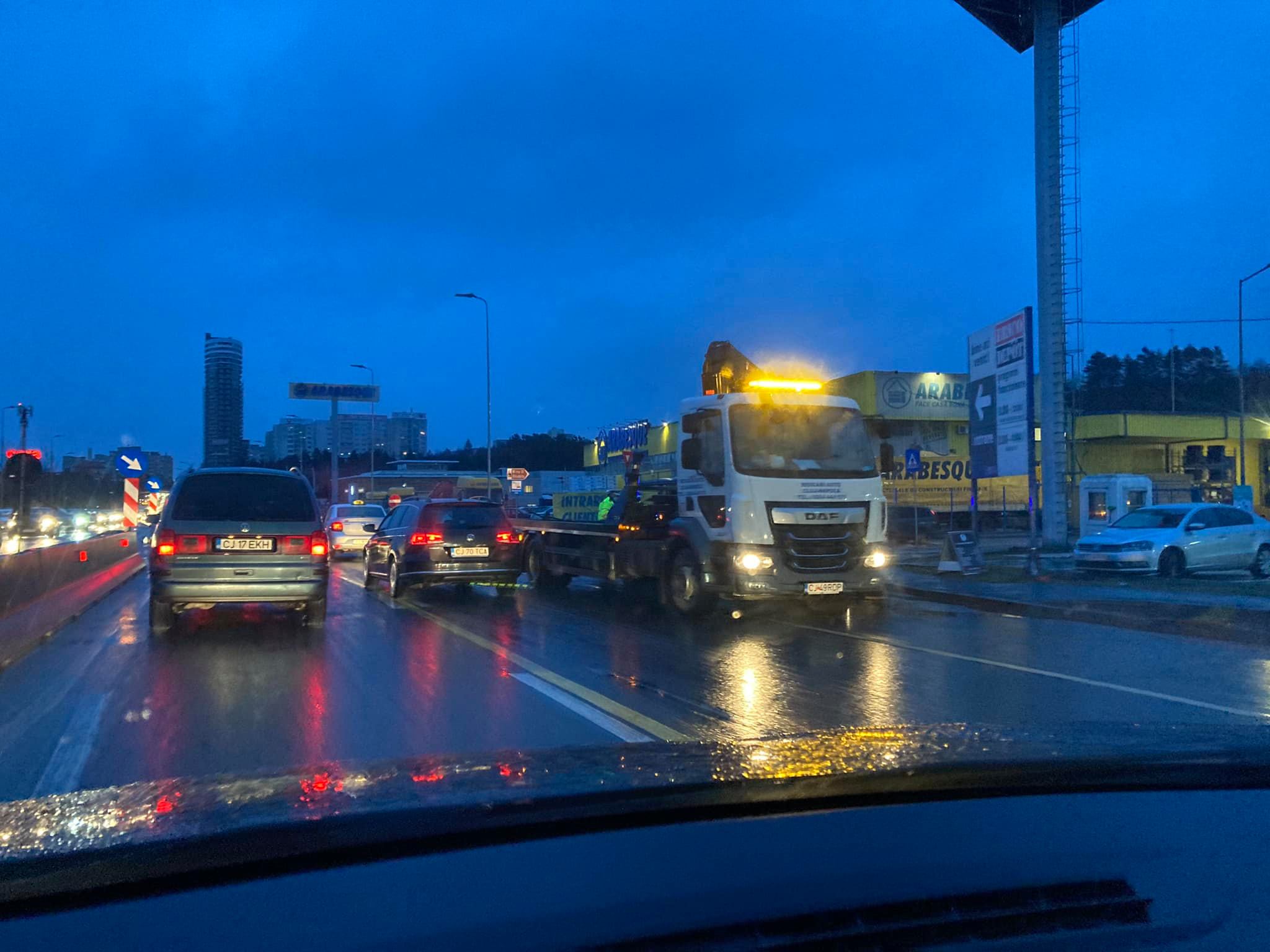 Proprietarul mașinii, care a rămas fără roată pe Calea Florești și stă în drumul național de sâmbătă seara, a făcut circ la ridicarea autoturimului de către Poliția Locală Cluj-Napoca.