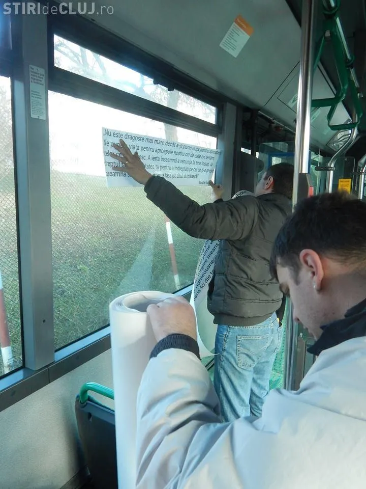 Citate din scriitori celebri lipite pe geamurile autobuzelor din Cluj-Napoca - FOTO