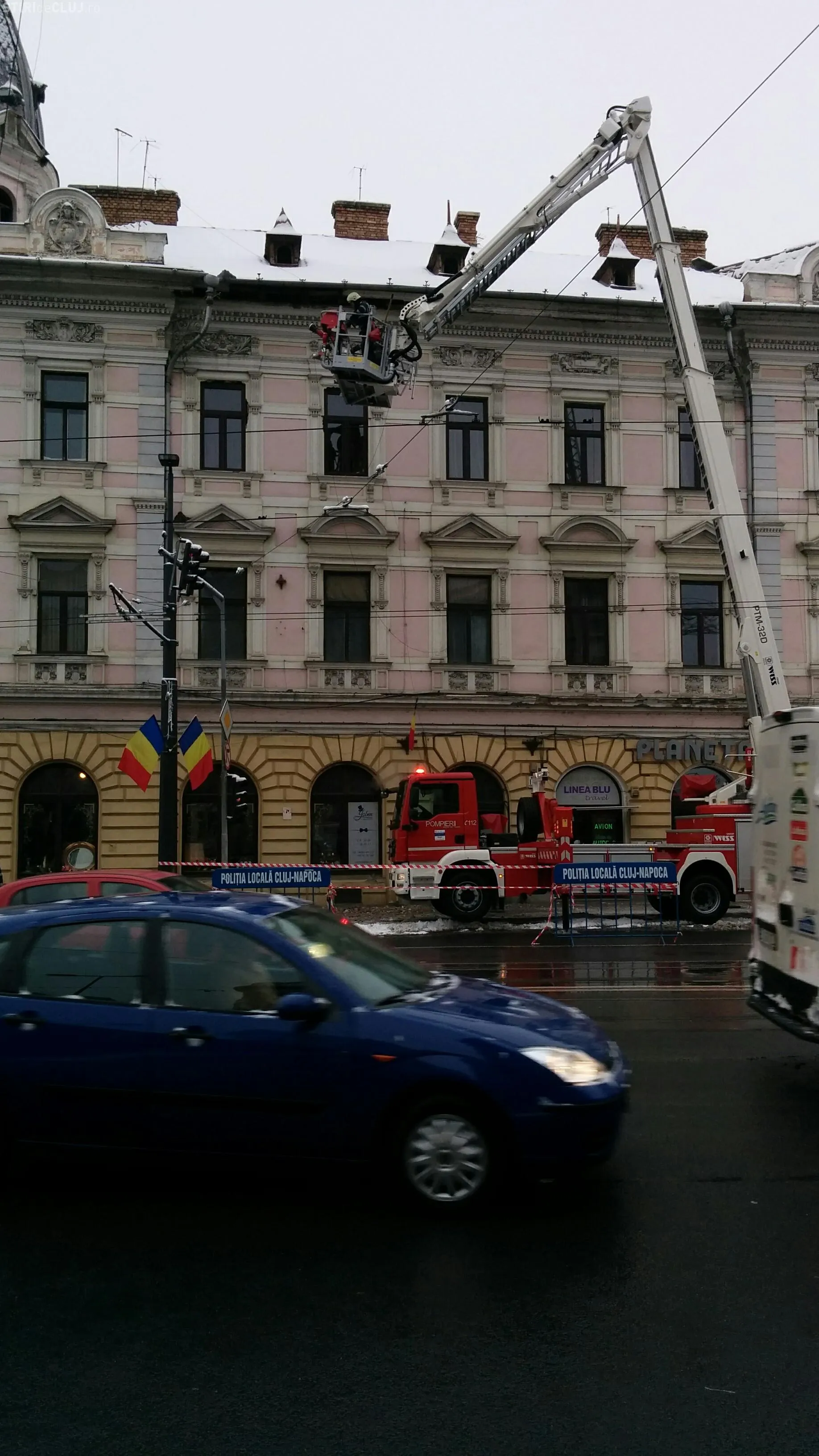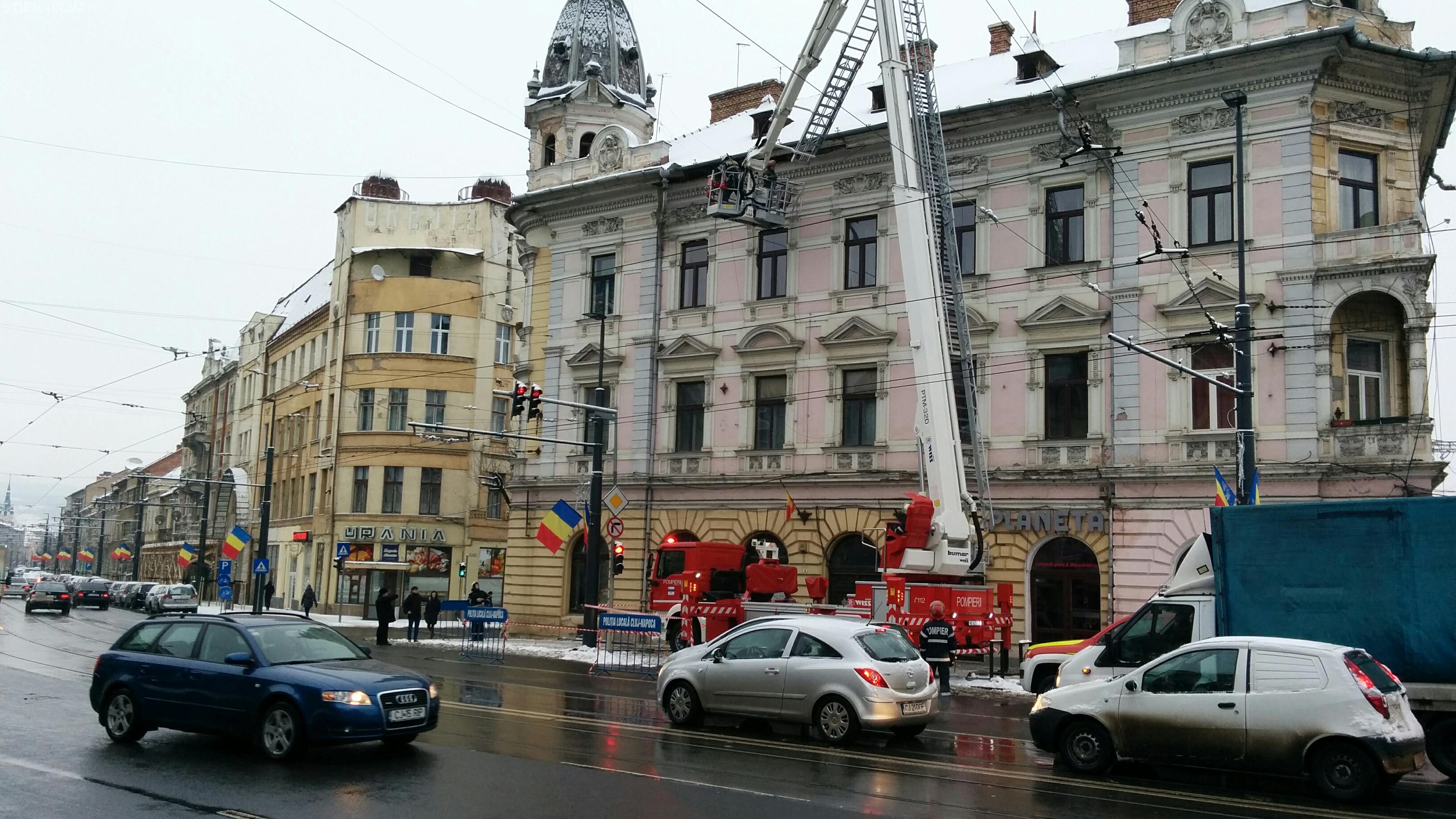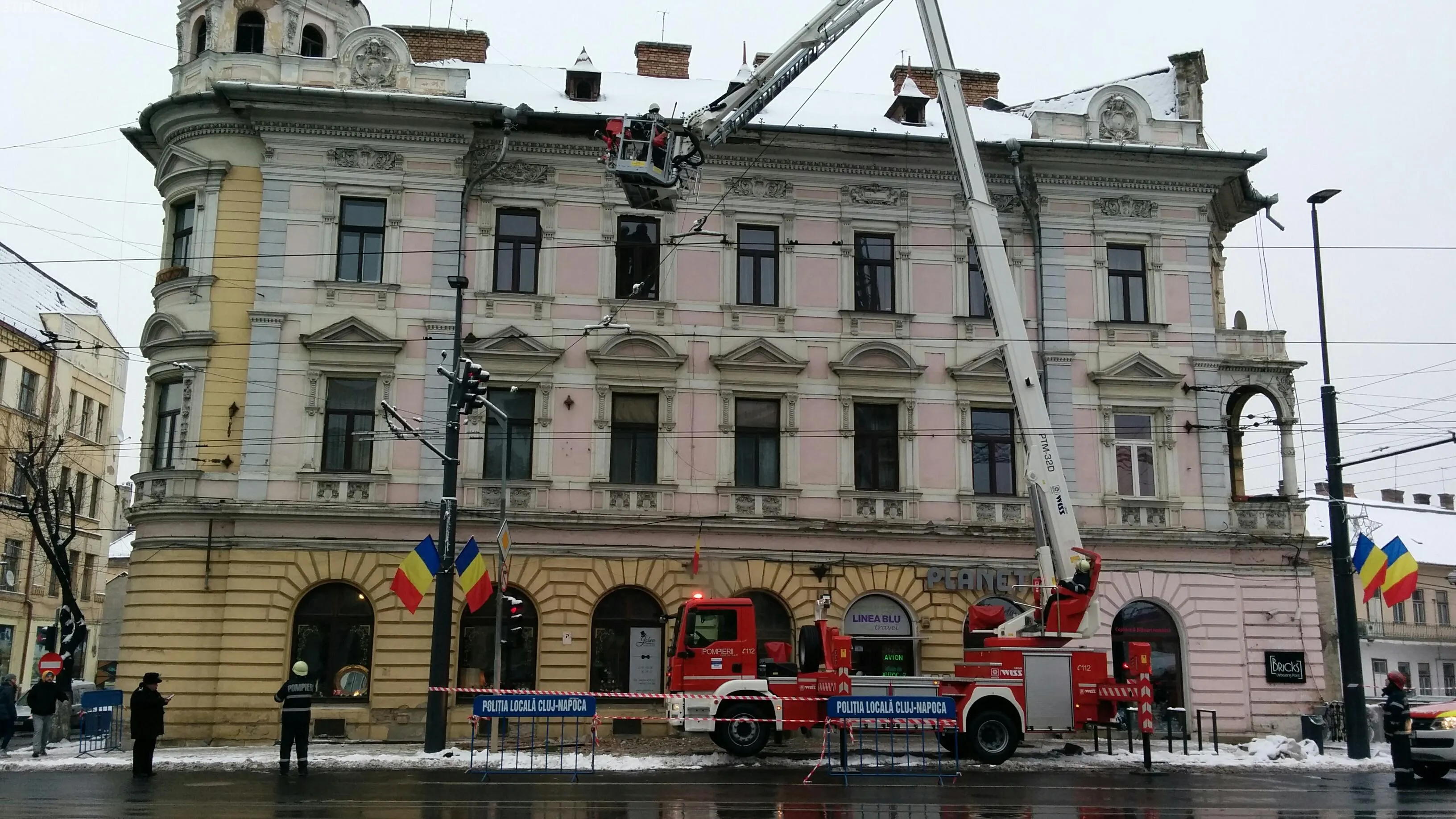 Potrivit ISU Cluj, este vorba despre o cădere de tencuială de pe fațada unui imobil, care ar putea pune în pericol siguranța trecătorilor.