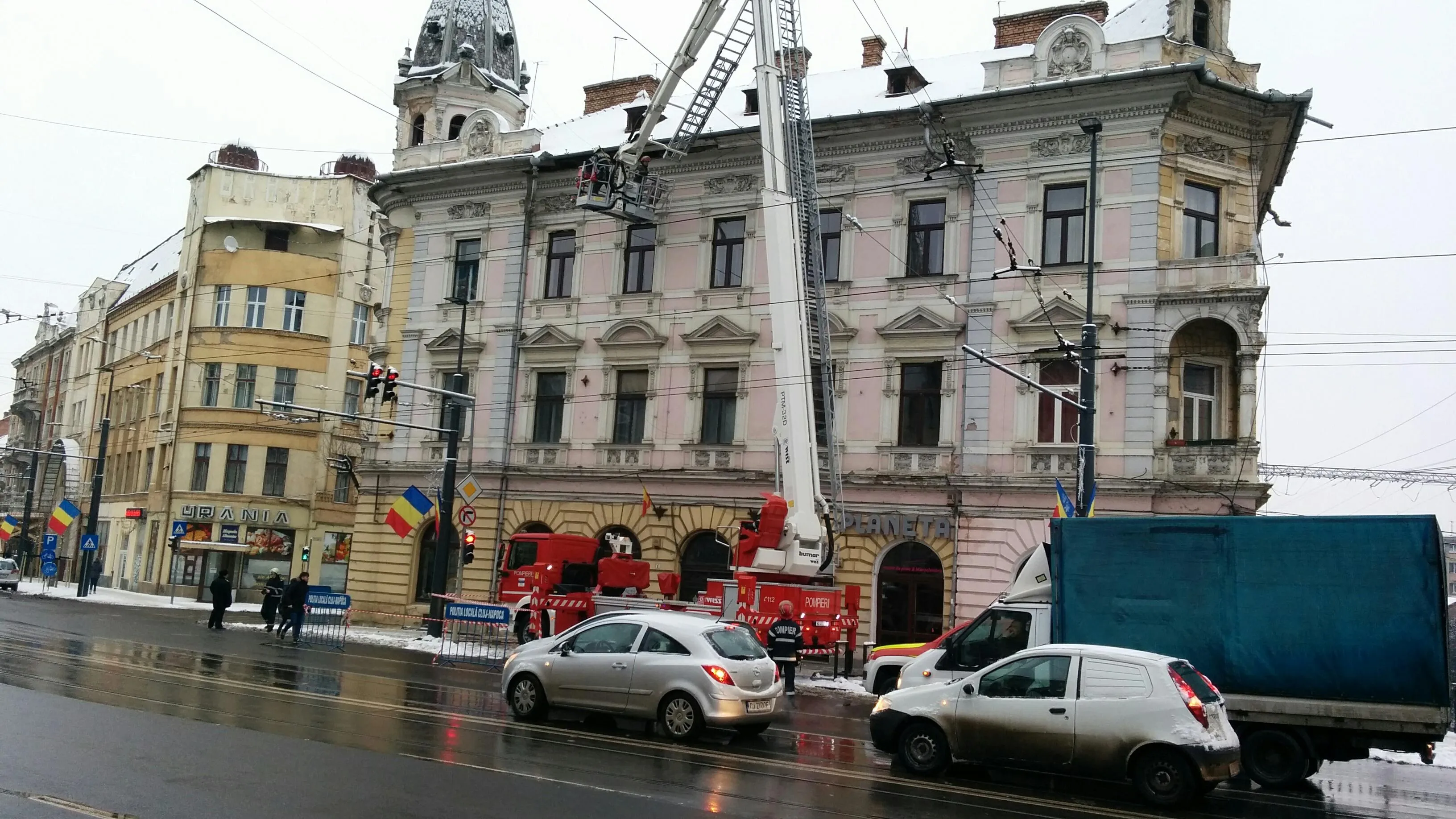Clădirile vechi pun din nou viața trecătorilor în pericol. Pompierii au fost solicitați să intervină pe strada Horea