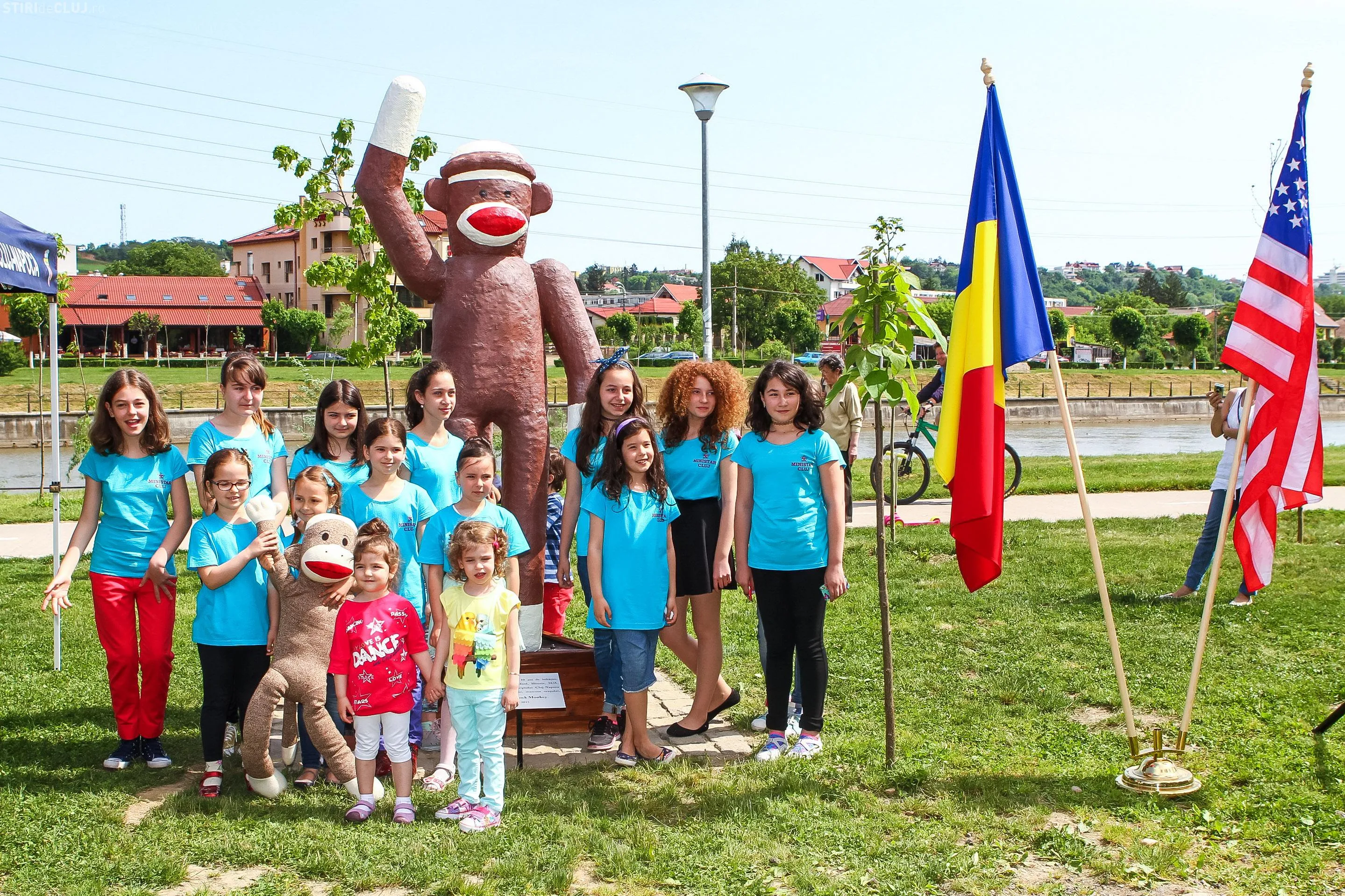 Un monumet al mascotei ”Nelson, The Sock Monkey” a fost dezvelit la Cluj-Napoca, pe malul Someșului.