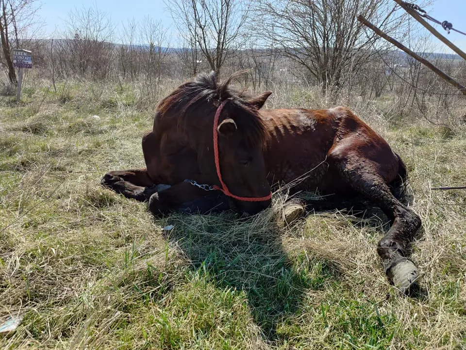 Buna ziua. Am găsit acest cal pe camp, aproape de str Soporului. E normal sa stea asa? Dacă nu, e ceva ce pot sa fac? Cand m-am apropiat de el, si-a ridicat doar capul, apoi l-a culcat iar. E legat de o caruta. Aici deseori țiganii lăsa caii la pascut”, a relatat femeia, pe grupul de Protecția Animalelor.