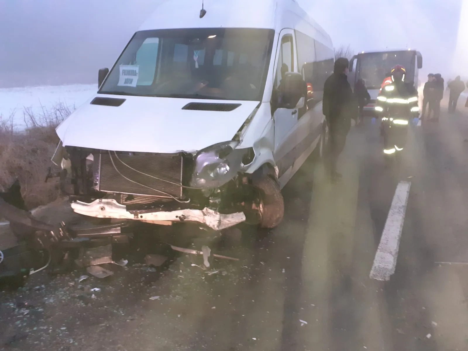 Solicitarea pentru intervenția pompierilor a fost înregistrată în jurul orei 07.00, fiind alertat concomitent și un echipaj SAJ. La fața locului salvatorii au găsit un microbuz pentru transport scolar și un autoturism avariate, cu ocupanții ieșiți din acestea.