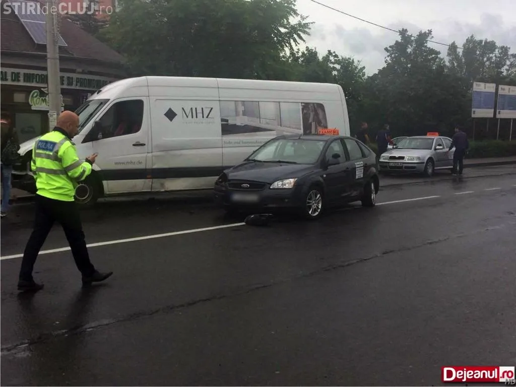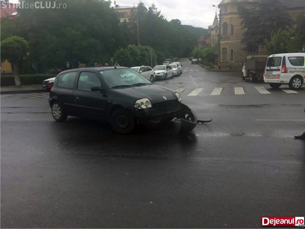 CLUJ: Accident cu trei mașini, dintre care una de școală de șoferi, în centrul Dejului. O persoană a ajuns la spital FOTO
