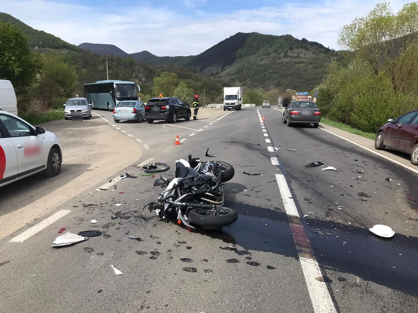 Un accident în care au fost implicate trei autoturisme și o motocicletă s-a produs în apropiere de localitatea Buru, județul Cluj.