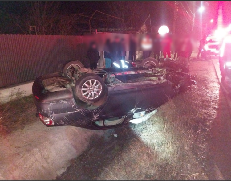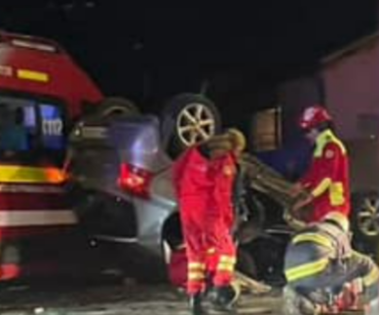 Cluj- Accident GRAV: O mașină s-a răsturnat. Trei persoane sunt evaluate de medici la această oră