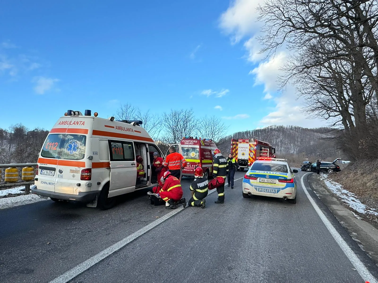 Pompierii din cadrul Detașamentului Huedin intervin în aceste momente la un grav accident rutier petrecut pe DN 1E60, Brăișoru, comuna Sâncraiu.