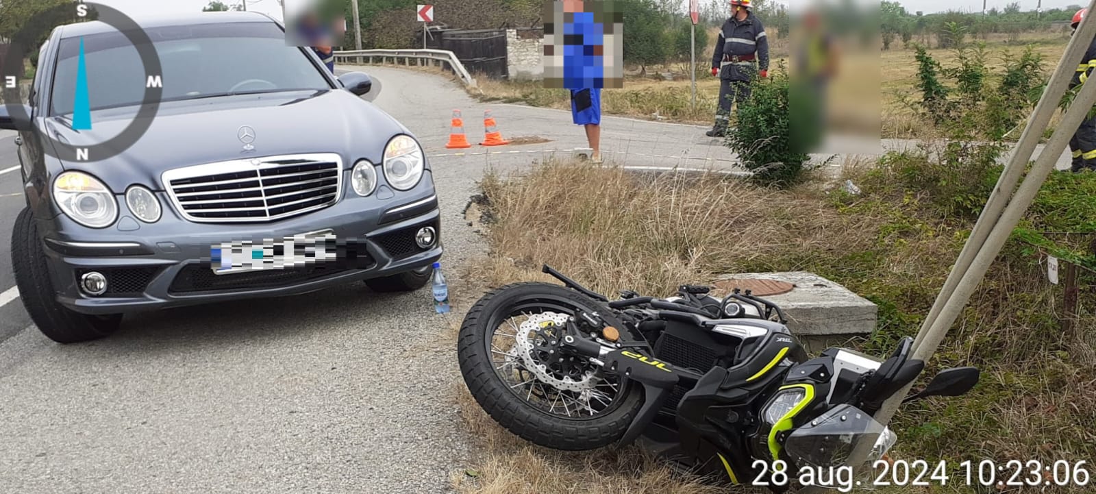 În accident a fost implicată o mașină și o motocicletă iar un bărbat a fost rănit.