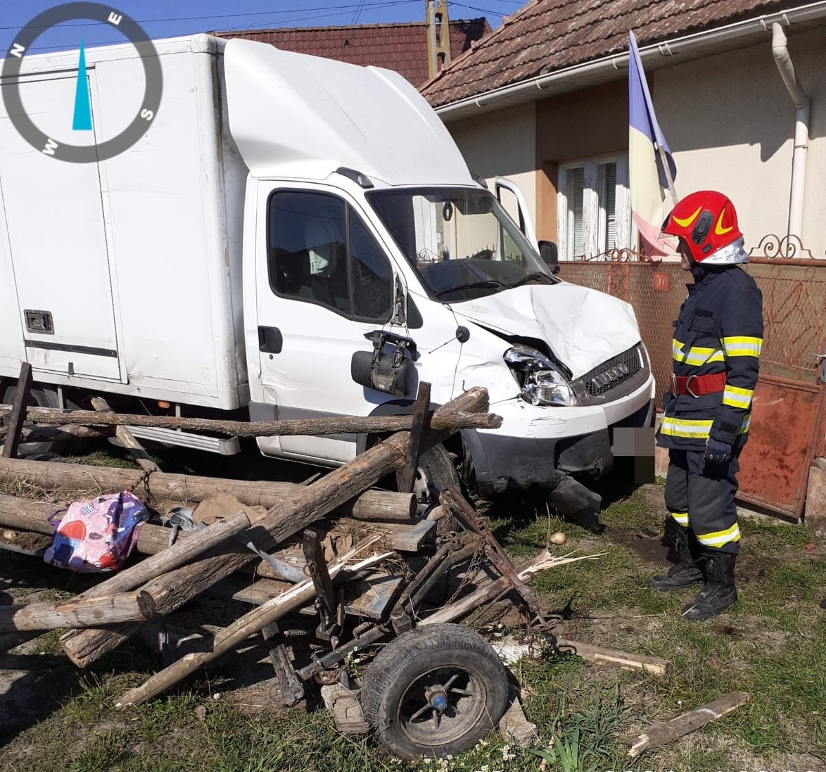Cluj: Accident în Dăbâca, între o autoutilitară și o căruță! Un bărbat a ajuns la spital