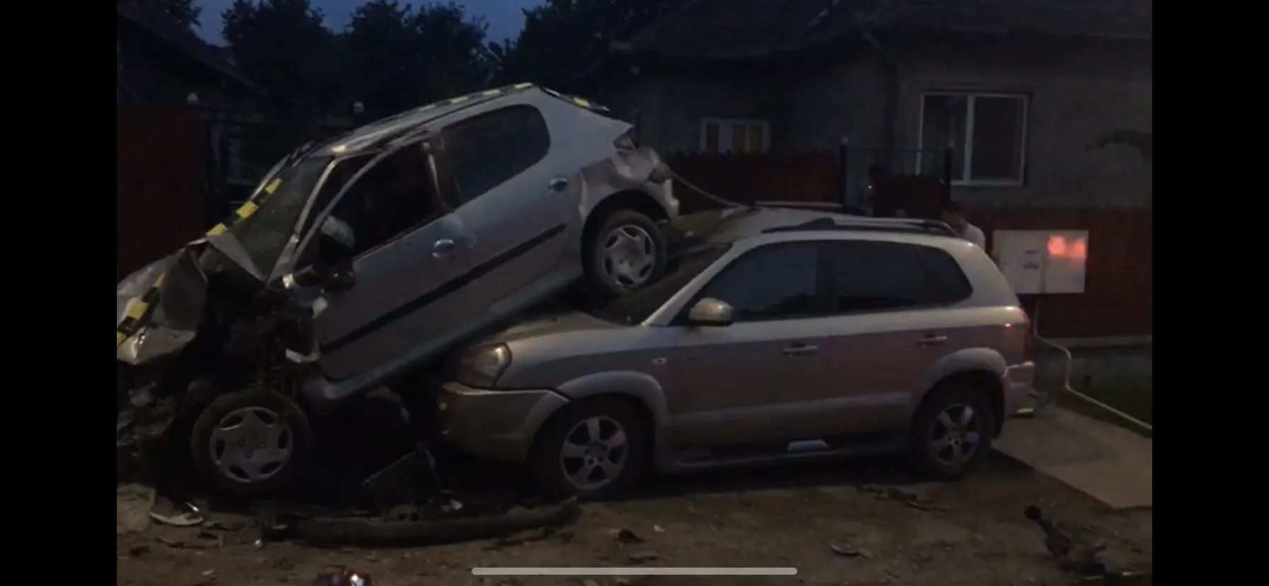CLUJ: Accident incredibil cauzat de un adolescent de 17 ani, beat la volan și fără permis. S-a urcat pe altă mașină VIDEO