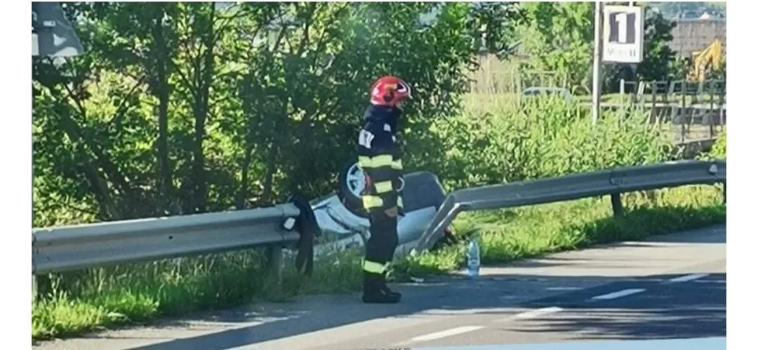 Un accident rutier a avut loc în această dimineață la ieșire din municipiul Dej. Din primele date, un autovehicul a părăsit partea carosabilă, a ieșit în decor și s-a răsturnat.
