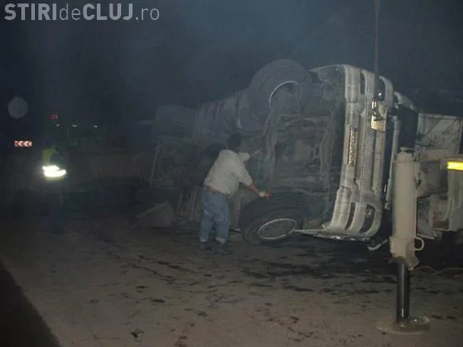 CLUJ: Accident la ieșire din Turda. Un șofer s-a răsturnat cu TIR-ul și a blocat circulația
