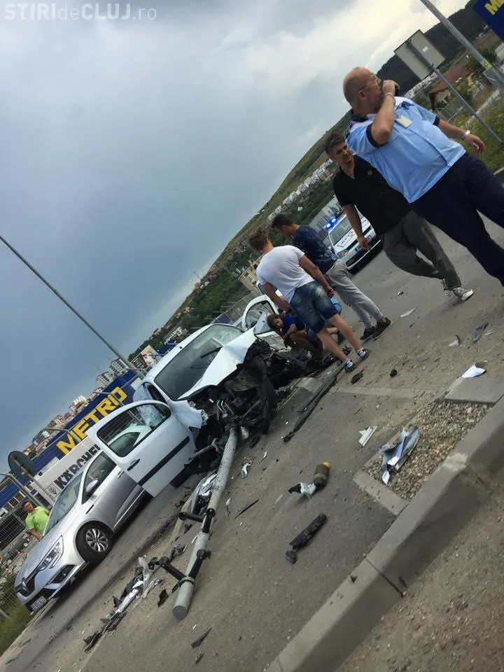 Cluj: Accident la Metro. Mașină făcută praf. Ce s-a întâmplat de fapt! - FOTO