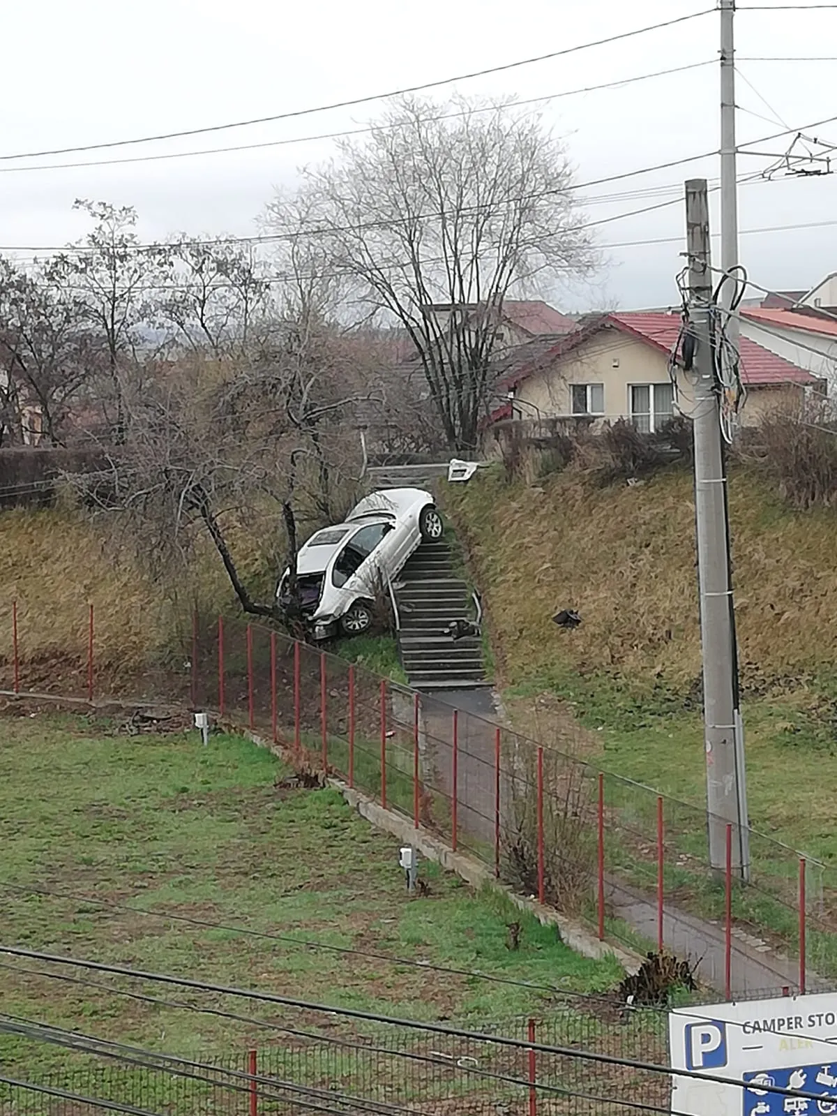 Este pe scările de acces de pe str Blajului spre Traian Vuia”, ne-a semnalat un martor. Accidentul s-a soldat numai cu pagube materiale.