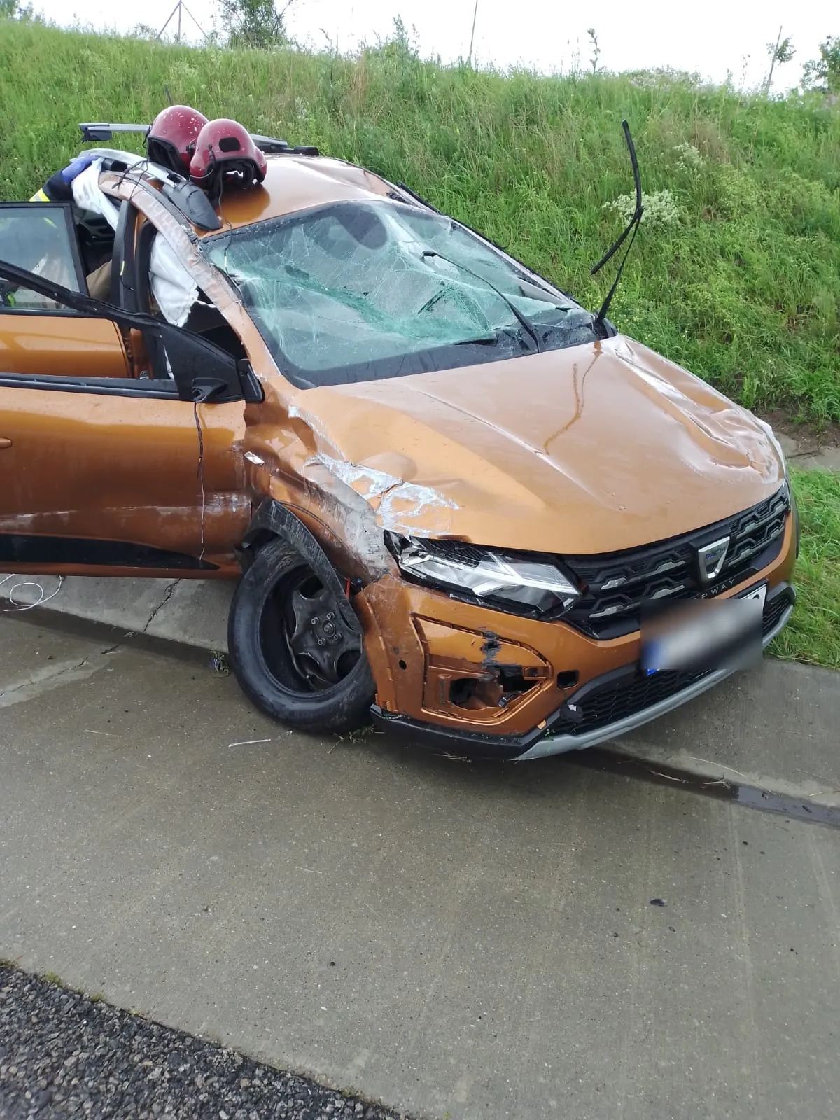 Cluj- ACCIDENT pe Autostrada A3. O mașină s-a răsturnat și două persoane au fost rănite/Elicoperul SMURD a aterizat la fața locului-FOTO