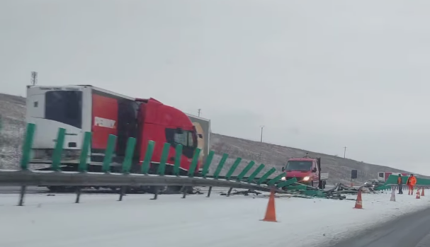 Cluj: Accident rutier din cauza condițiilor meteo pe A3. Un autocamion s-a izbit cu putere de parapeții de metal - VIDEO/FOTO
