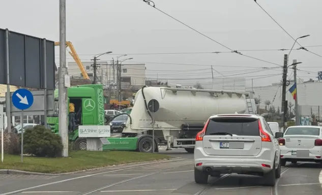 Un accident rutier minor a avut loc între un autoturism și un autocamion în zona Auchan, cartierul Iris, astăzi, 20 decembrie, în jurul 10:20.