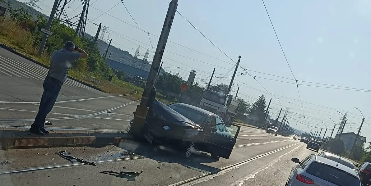 Din primele informații o mașină a intrat în coliziune cu un stâlp. În urma evenimentului, partea din față a autoturismului a fost avariată puternic.