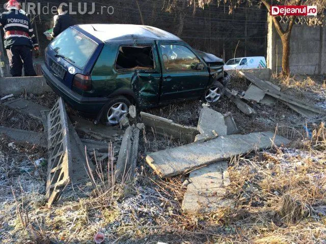 CLUJ: Accident rutier pe o stradă din Dej. Un șofer a făcut praf gardul unei fabrici FOTO
