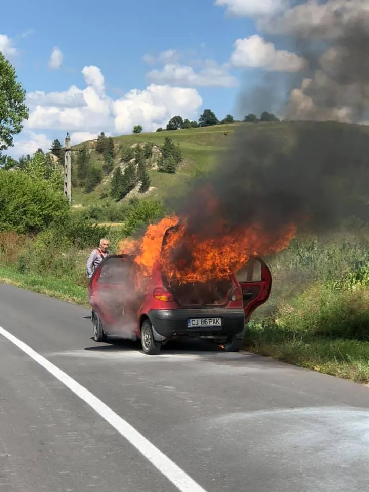 Un șofer a dat foc vegetației pe drumul dintre Aghireș și Leghia, dar focul i-a cuprins și mașina.