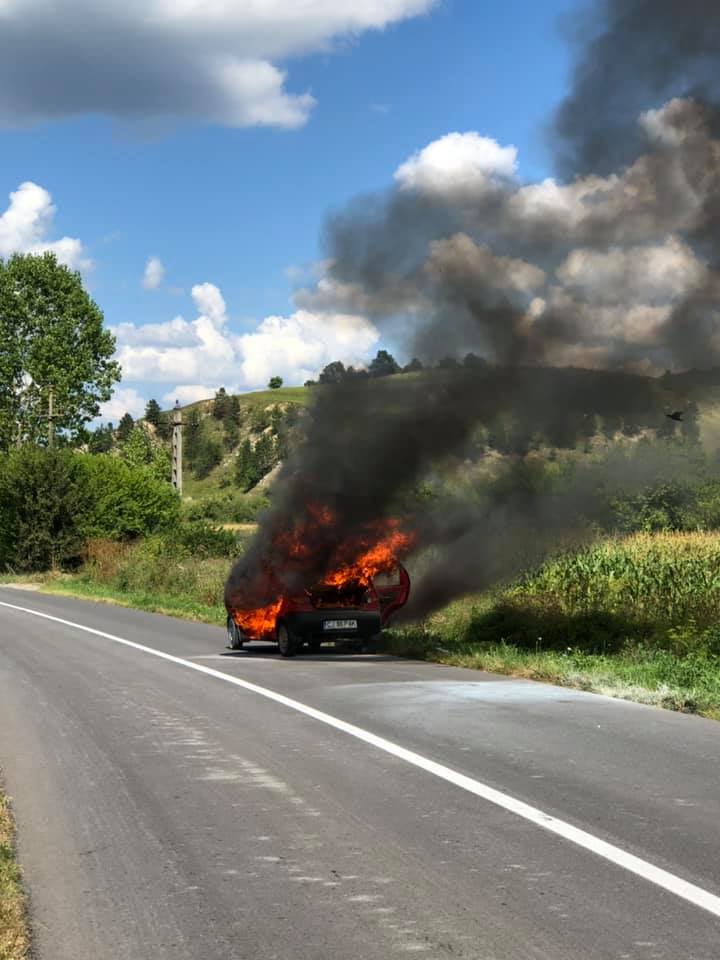 Pompierii au fost solicitați in jurul orei 15.10 în urma acestui eveniment, iar în momentul sosirii la fața locului au găsit mașina cuprinsă în totalitate de flăcări.