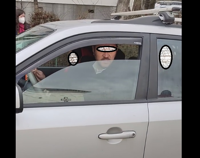 ”Vreau sa trag un semnal de alarma si sa va prezint ce am patit astazi. Vin cu tatal meu acasa, gasim parcarea ocupata, masina din poza cu numar in geam. Sun, imi raspunde domnul din filmare, ii spun ca doresc sa parchez si imi raspunde cu "Bine". Apare agresiv, ne zice ca el lucreaza la primarie si stie ca nu avem abonament si daca avem ca nu e platit, ca sa ii aratam noi abonamentul ca altfel nu muta masina. Tatal meu ii spune ca nu daca nu e in misiune nu ii arata nimic si ca suna la politia locala., respectivul se tot isteriza pe langa masina lui. Tata incepe sa sune la politie, intre timp apare familia respectivului, tot facea figuri, tatal meu ii spune sa nu plece pana nu vine politia daca se crede asa smecher. Eu mut masina in spatele lui, imi atinge bara cu carligul, apoi se da jos la tata si il ameninta ca il nenoroceste pe el si toata familia lui, ca acum e cu familia si nu se poate bate, dar sa se intalneasca mai tarziu sa se bata.