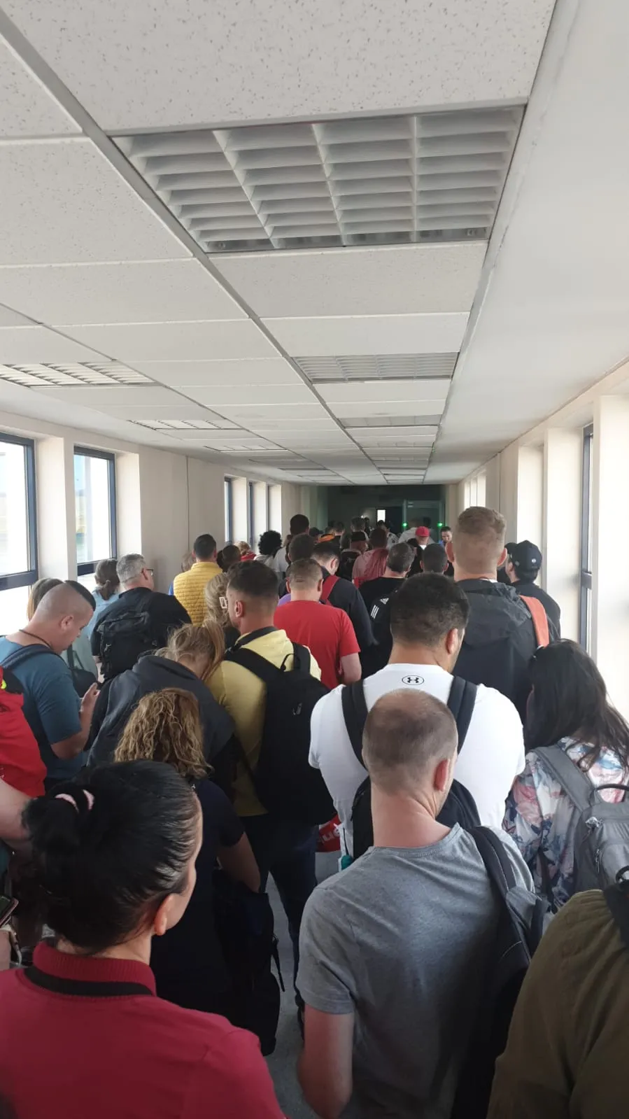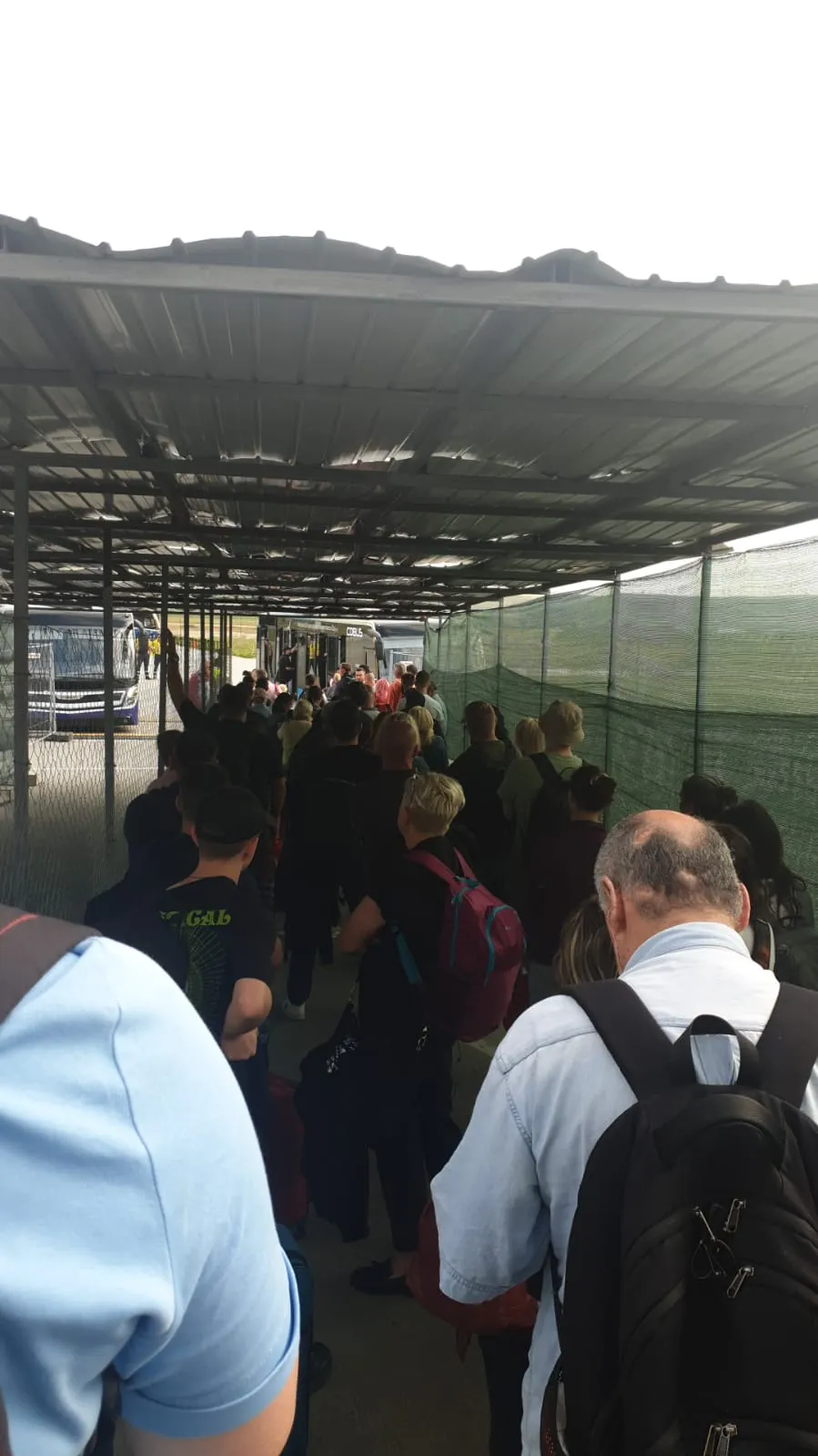 ”După două ore de stat ca fraieri, când deja am trecut o dată de scanare și securitate suntem urcați în autobuze, scoși afară din Aeroport.