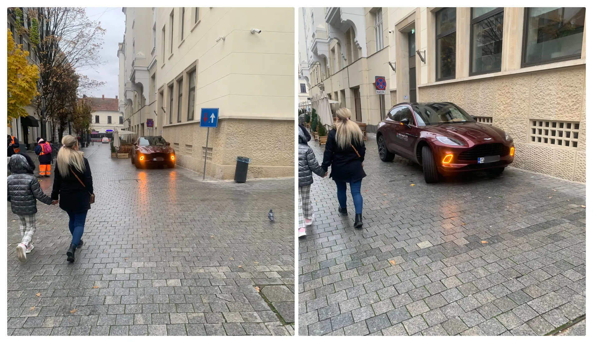 Un Aston Martin de circa 300.000 de euro a fost parcat cu avariile pornite timp de câteva zeci de minute (minim) pe pietonala de pe strada Emile Zola, în centrul Clujului. Mașina a stat acolo cel puțin 30 de minute între orele 12.00 și 12.30.
