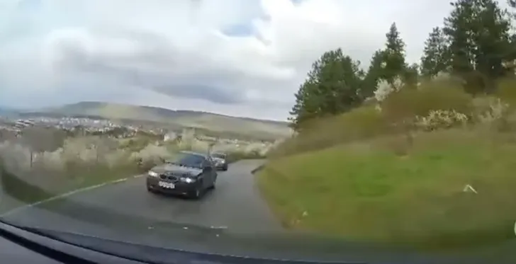 Un șofer de BMW cu numerele de Sălaj a fost surprins de camera de bord a unui autoturism aflat pe banda opusă, cu care era să facă accident.