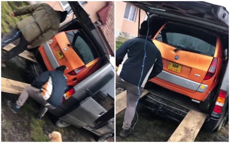 Niște bărbați din Căianu, județul Cluj, au devenit vedete pe TikTok, după ce au transportat o mașină într-o dubă, iar apoi nu au mai putut-o da jos.