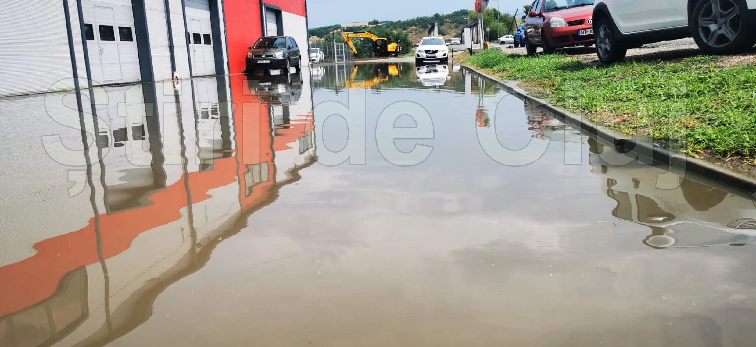 Cluj: Canalizarea a cedat lângă depozitul unei firme. Apa a curs șiroaie zeci de minute și a creat un adevărat lac în zonă. S-a intervenit cu pompe VIDEO