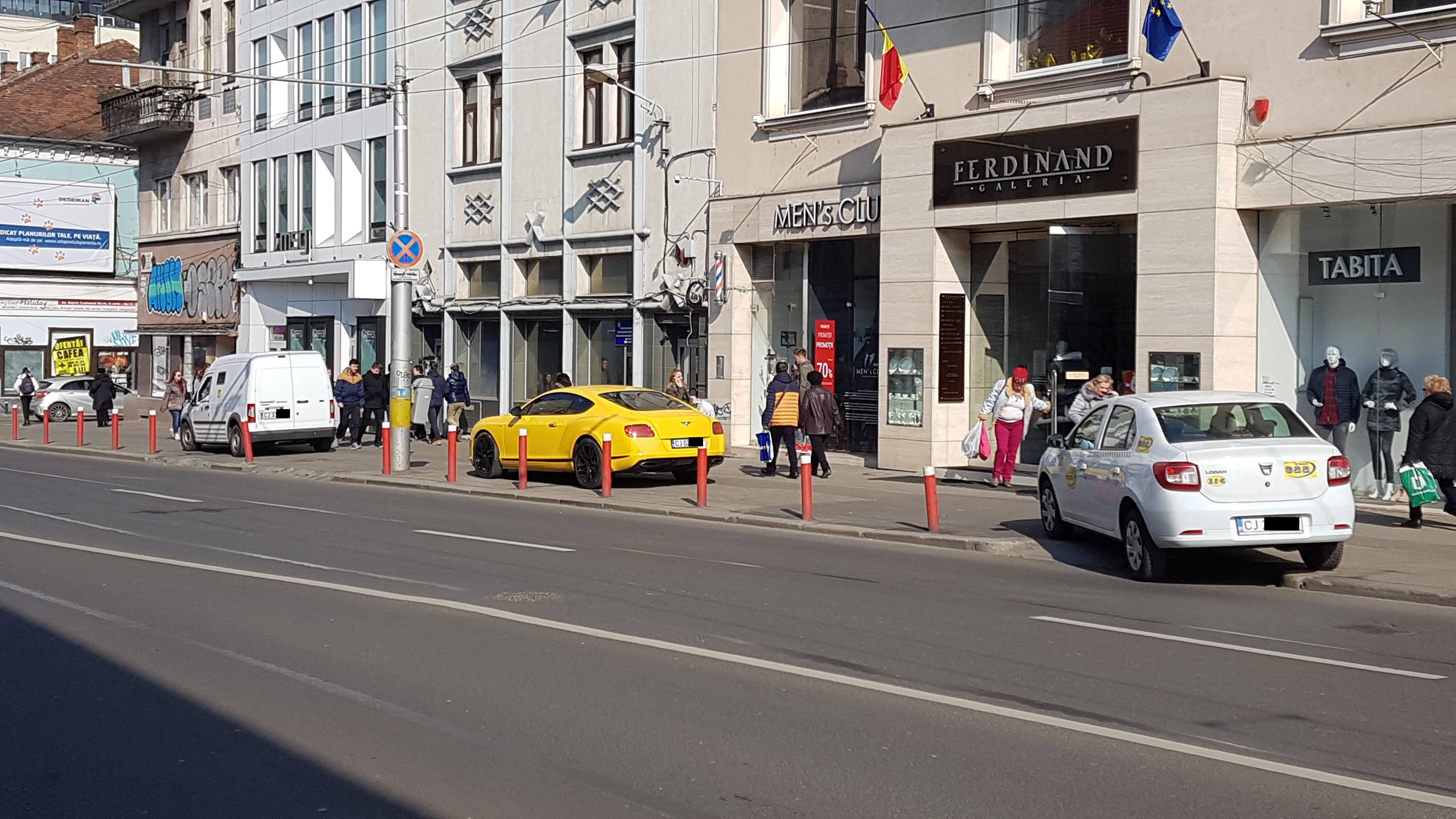 Autoturismul marca Bentley a fost parcat pe Regele Ferdinand, în fața magazinelor, miercuri, în jurul orei 13.00. Polițiștii locali lipseau din zonă, fiind la o ședință, iar șoferul s-a gândit că nu are rost să plătească parcarea în Piața Unirii. Pe trotuar erau parcate și alte mașini, zona fiind un adevărat magnet pentru șoferii sătui să caute o parcare.