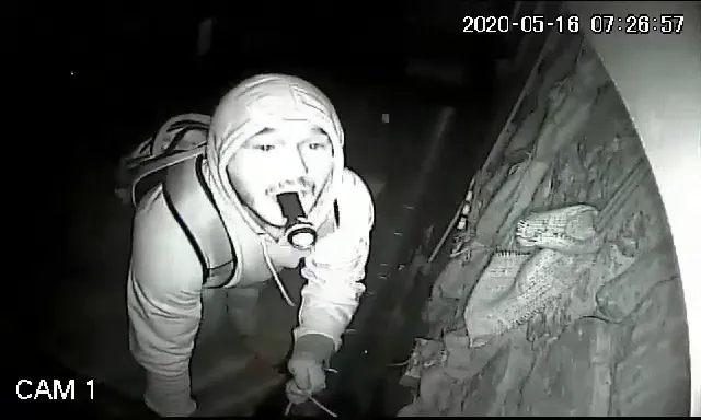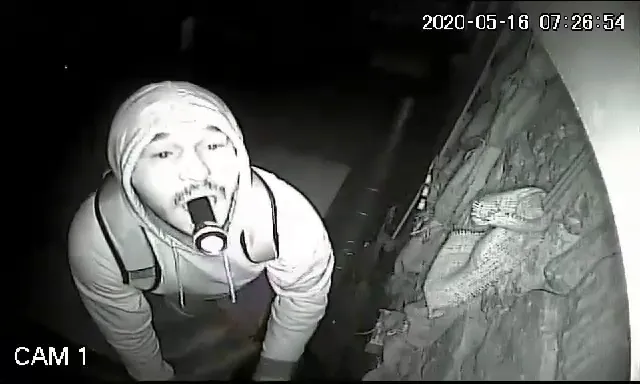 Amplsat sub camera de supraveghere, spărgătorul se tot uită și verifică, fără să îi treacă prin cap că degeaba taie firele pentru că deja a fost filmat. Proprietarul localului a accesat imaginile din server, iar acum hoțul poate fi identificat foarte ușor.