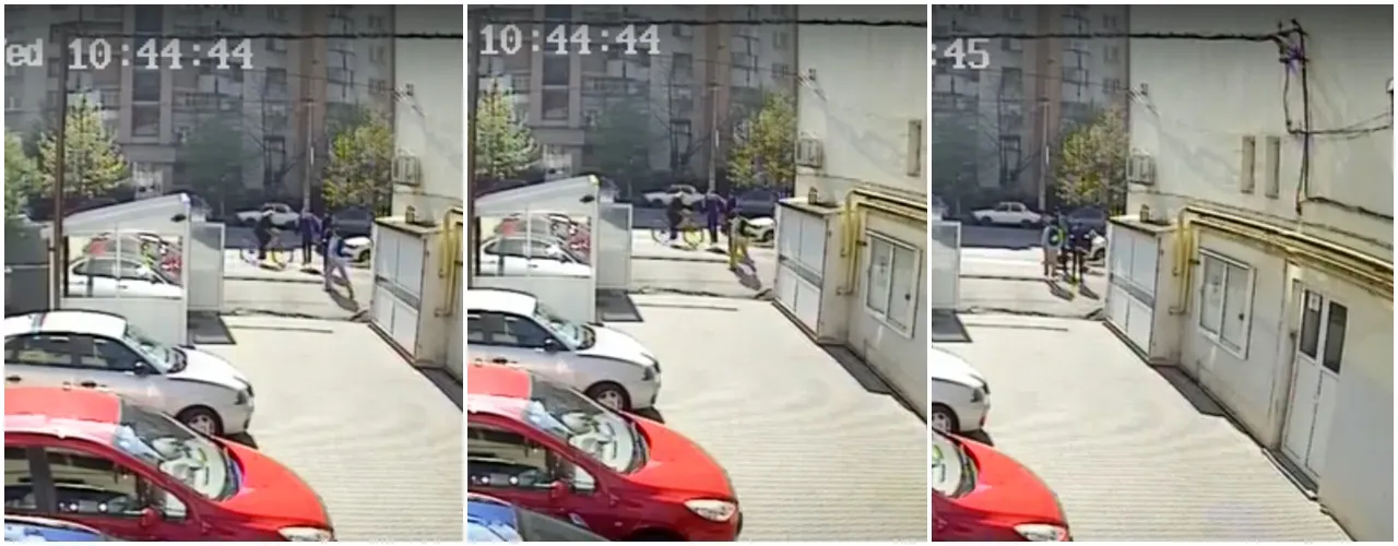 Eram împreună cu 4 colegi, înainte sa iesim de la facultate ne-am asigurat că nu vine nimic, dar în stanga este o mica curba și nu se vede după ea din cauza zonei verzi de la bloc.