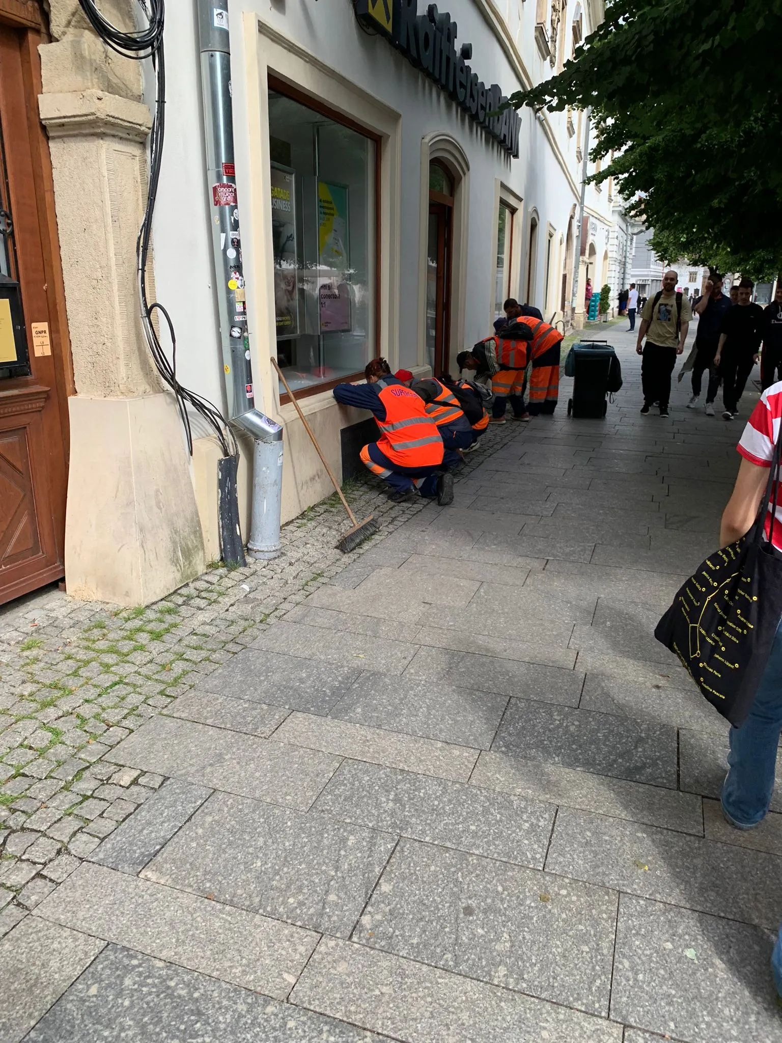 Cluj - Cooperativa ”munca în zadar”! Șase oameni culegeau iarba dintre dalele de granit, în centrul orașului - FOTO