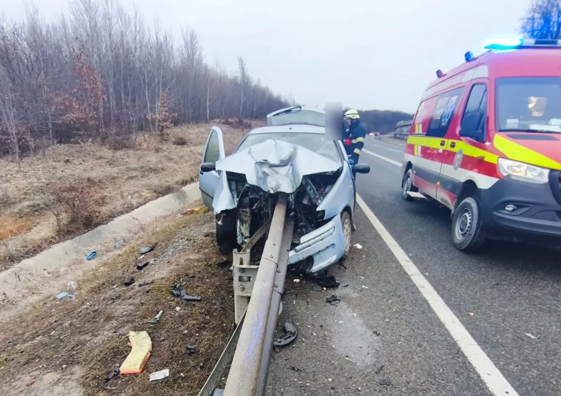 Mai exact, o tânără de 20 de ani, din județul Alba, a pierdut controlul asupra direcției de mers într-o curbă la stânga, intrând în coliziune cu parapetul metalic.