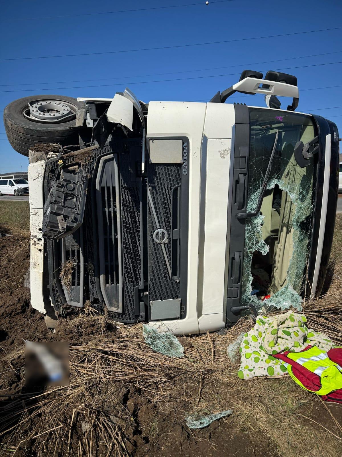 Cluj: TIR răsturnat într-un șant la ieșire din Florești! Un bărbat a fost consultat de paramedicii SMURD - FOTO/VIDEO - Ştiri de Cluj