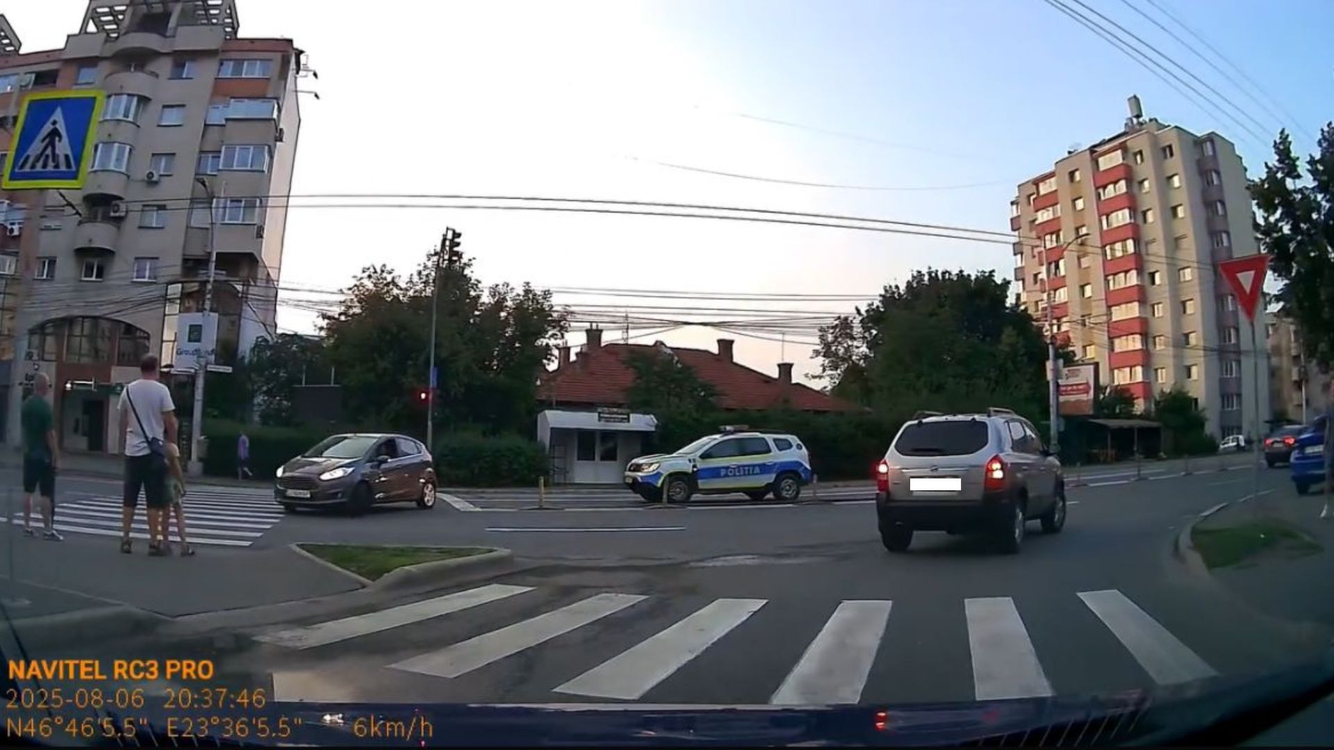 Cluj: Cum s-a terminat „aventura” unui șofer care a ignorat linia dublă continuă, trecerea de pietoni și...mașina de poliție din spatele lui VIDEO