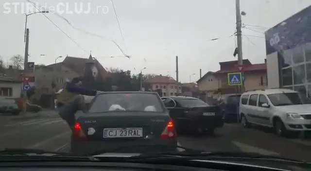 Prudent, șoferul șicanat a blocat ușile Daciei și a reușit să plece. Mașina i-a fost lovită, dar nimeni nu i-a sărit în ajutor.