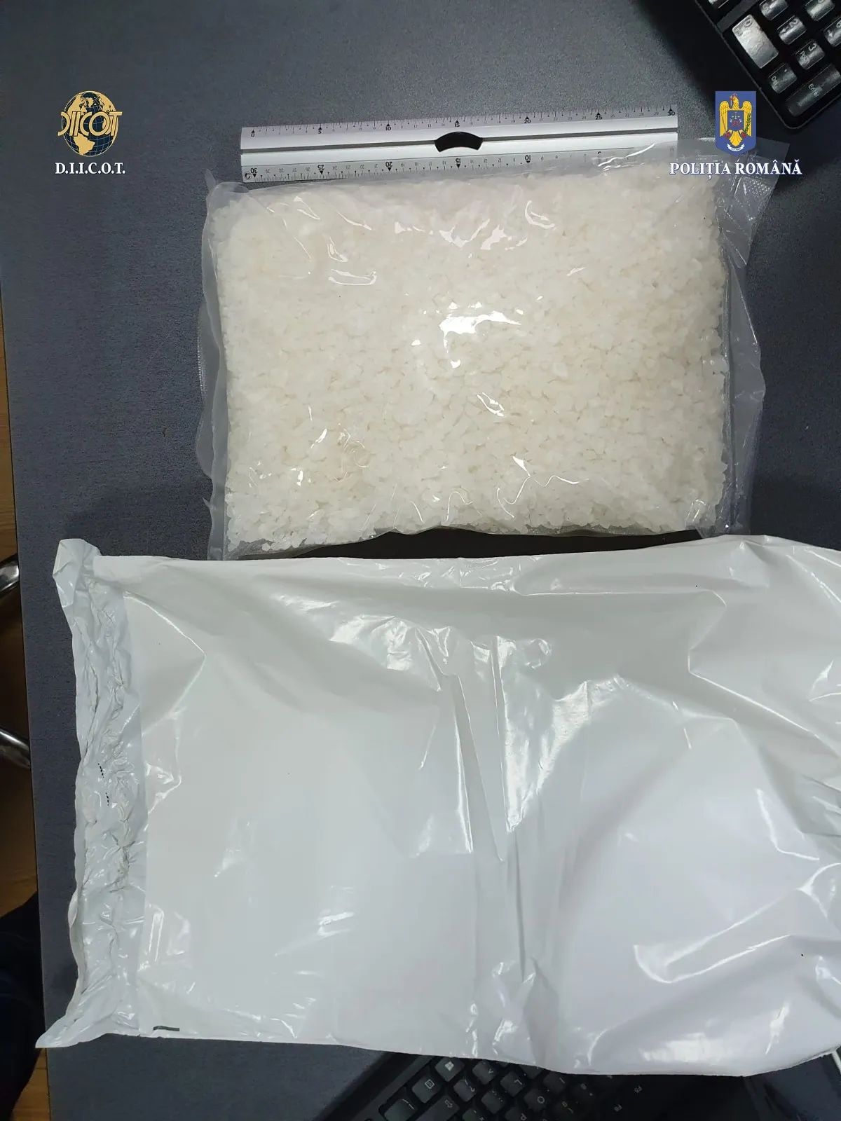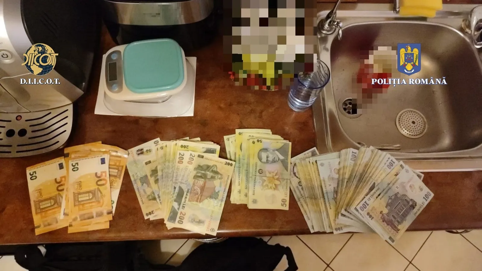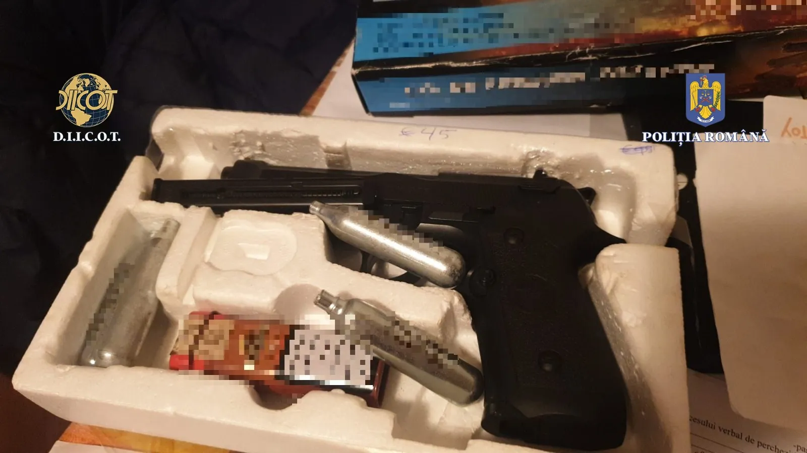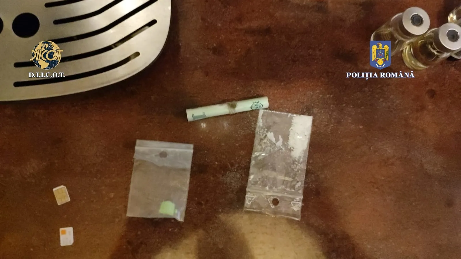 În urma perchezițiilor, au fost identificate și indisponibilizate 20 de plicuri conținând o substanță pulverulentă de culoare albă, 47 de plicuri cu urme de astfel de substanță, o pastilă de culoare verde aprins, 5 cântare, 2 grindere, mai multe bancnote rulate, 16 telefoane mobile, un laptop, 3 pistoale airsoft, 2 săbii, 2 cuțite, înscrisuri, precum și 67.600 de lei și 500 de euro.