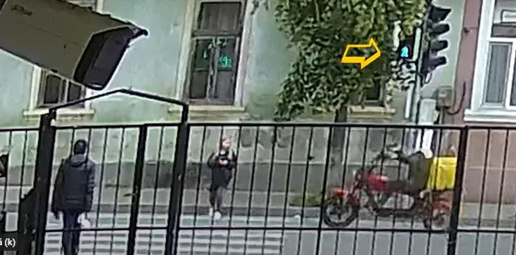 Eleva a ajuns la trecerea de pietoni și a apăsat butonul pentru schimbarea culorii semaforului. A așteptat cuminte până când semaforul pentru pietoni a devenit verde, semn că poate traversa în siguranță. Cu toate acestea, imediat ce a făcut primul pas, un livrator de mâncare pe moped a trecut în viteză pe lângă ea, ignorând complet semaforul și obligația de a opri.