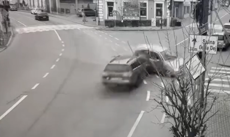 Un accident rutier grav a avut loc miercuri, 1 ianuarie, pe strada Mihai Viteazu din Dej, fiind surprins de camerele de supraveghere din zonă. Cinci persoane au ajuns la spital în urma impactului puternic dintre două autoturisme.