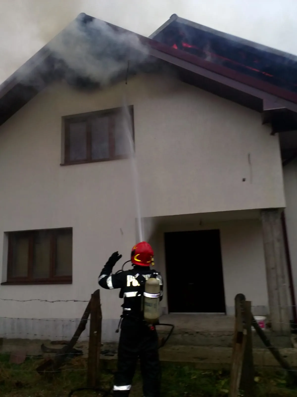 La sosirea pompierilor acoperișul și etajul superior al casei erau cuprinse de incendiu, extinderea acestuia fiind favorizată de materialul lemnos din structura acestora.